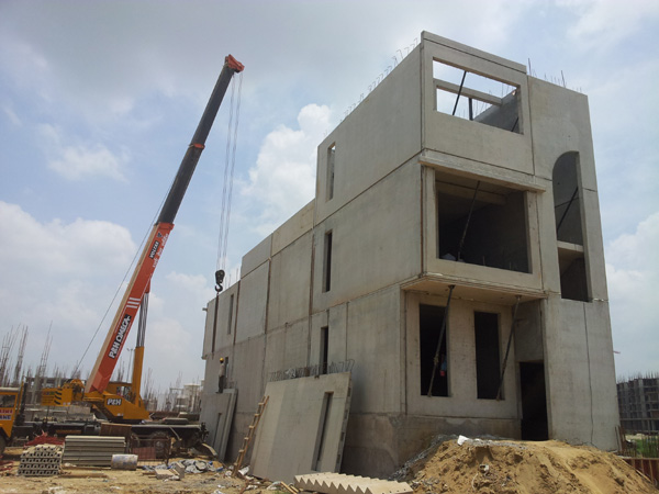 Our client Supertech Ltd. has completed the construction of the precast villas at Upcountry project site on the Yamuna express way. The villas were constructed using a precast building system of load-bearing precast walls in combination with prestressed hollow-core slabs. For a large number of villas the basement structure was made in precast concrete as well to speed up the construction process.